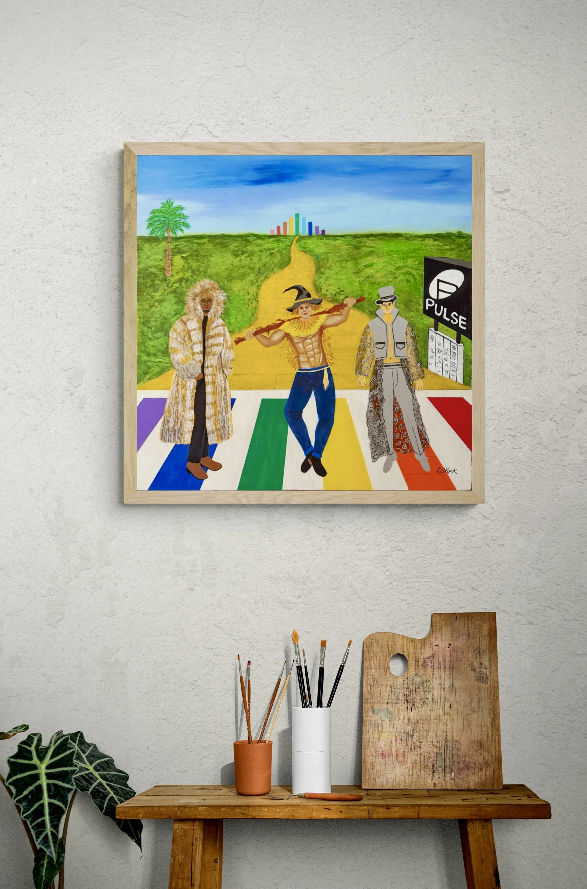 Acrylic on canvas framed in blonde wood